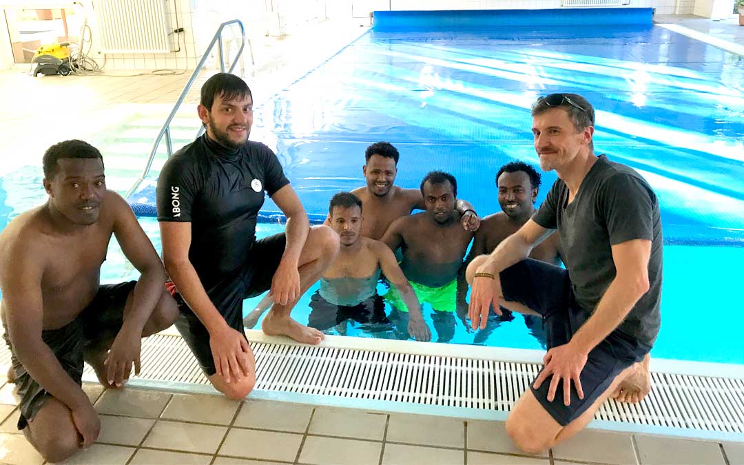 Seit dem 20. April gibt es beim Arbeitskreis Asyl Roßdorf-Gundernhausen, im Becken des AWO-Seniorenheims, zwei Schwimmkurse für erwachsene Flüchtlinge.